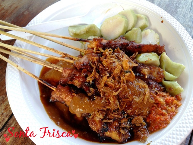 Ini merupakan salah satu makanan khas Indonesia. Satu porsi sate ayam berjumlah 7 tusuk dengan lontong dijual dengan harga 29K.