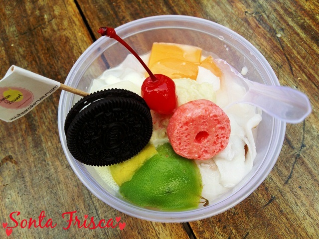 Para penggemar durian, The Pancake Museum hadir di sini menjual salah satu menu andalannya, sop duren. Satu porsi durian dengan topping warna-warni dari biskuit oreo cokelat hingga buah cherry merah yang menggoda. Jus durennya manis dan kental dengan topping warna-warni itu dibanderol dengan harga 36K.