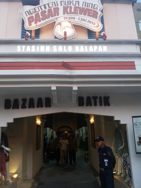 Pihak Mal La Piazza selaku penyelenggara memang tak hanya memindahkan spirit pedagang Pasar Klewer ke Jakarta, namun juga berupaya merenda ingatan warga Solo di ibukota dengan menghadirkan suasana yang diupayakan mirip dengan pasar Klewer. Lihat saja pintu masuk bazaar batik dibuat menyerupai pintu masuk stasiun kereta api Solo Balapan yang terkenal itu.