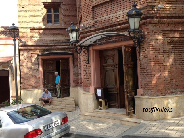Ketika kemudian saya sempat berbincang-bincang dengan orang yang ada di beranda masjid ini, ternyata baik orang sunni maupun syiah sudah biasa secara bersama menggunakan masjid cantik yang ada di bukit di dekat kawasan kota tua Tbilisi ini.