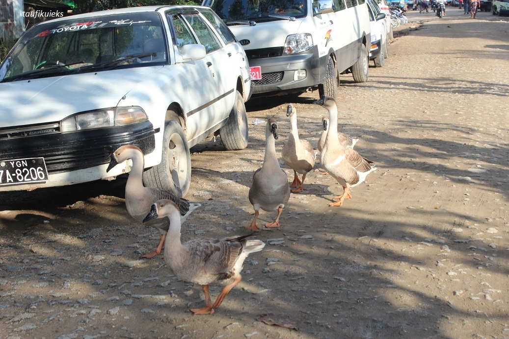 Perjalanan kian semakin asyik karena di Dala ini hewan peliharaan pun bebas berjalan ke mana saja. Di antaranya kita sempat melihat serombongan angsa yang megendus-ngendus di sekitar roda mobil tua yang sedang parkir.