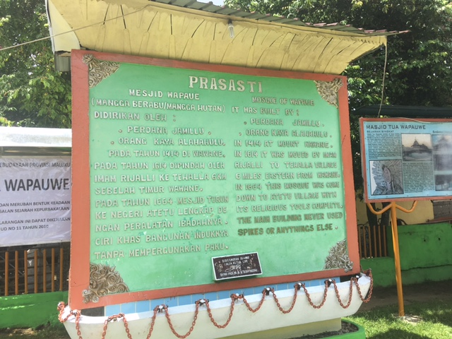 Selesai sholat selain sekedar bercakap-cakap dengan marbot tadi , saya juga membaca papan informasi tentang sejarah masjid . Kali ini nama masjid nya dieja dengan nama wapauwe dan dikisahkan mula-mula didirikan dilereng gunung Wawane oleh Perdana Jamillu , seorang keturunan sultan Jailolo dari Moloku Kie Hara (Maluku Utara). Masjid ini kemudian dipindahkan ke kampung Tehalla karena kedatangan bangsa Belanda di Wawane . Dan tempat yang baru ini banyak terdapa tmangga hutan atau mangga berabu yang dalam bahasa setempat disebut wapa. Sejak saat itu masjid ini dinamakan Wapaue atau wapauwe yang berarti masjid yang didirikan di bawah pohon mangga berabu.