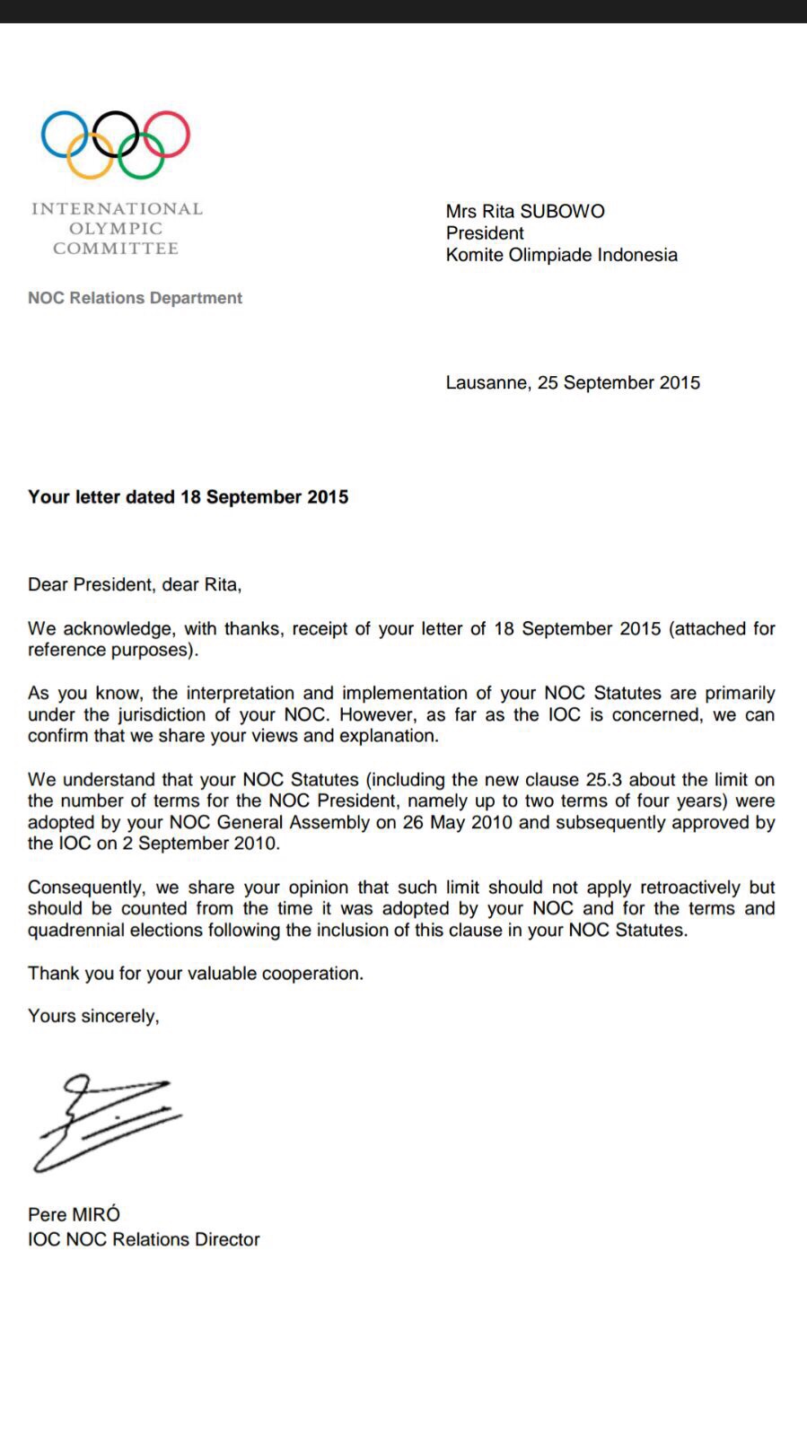 - 2011 AD/ART Komite Olimpiade Indonesia (KOI) telah diterima dan disetujui oleh IOC