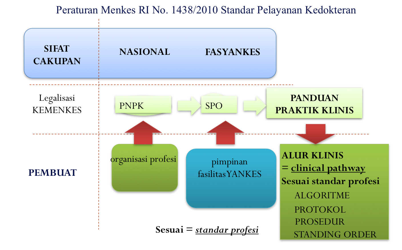 Sebagai pelaksanaannya kemudian diterbitkan Permenkes 1438/2010 tentang Standar Pelayanan Kedokteran.