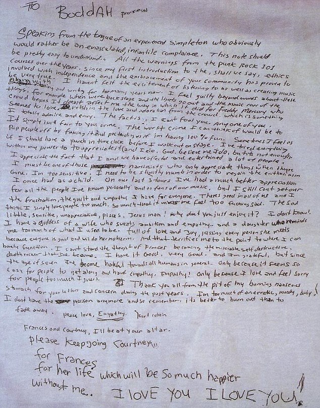 Dan ada yang menarik dari sosok Kurt Cobain dalam pandangan penulis apalagi kalau bukan soal surat perpisahannya yang menggambarkan kondisi dan kegundahan dirinya.