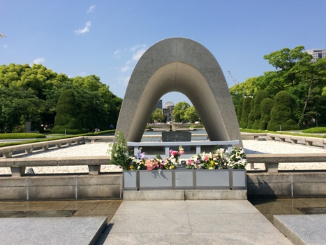 Kisah ini sangat menyedihkan. Saya hanya hanya mendengar satu kisah ini, kemudian memutuskan untuk keluar dari museum. Suasana berduka dan jerih terasa pekat di dalam sana. Di depan taman terdapat simbol perdamaian Kota Hiroshima, harus dilihat dari depan. Bentuknya setengah lingkaran agak menonjol bagian atasnya, di tengah-tengahnya terdapat kobaran api dengan latar Genbaku di kejauhan, berada di dalam setengah lingkaran itu melambangkan biarlah Hiroshima saja yang cukup merasakan penderitaan akibat kekejaman perang, dan biarlah api perdamaian terus berkobar demi korban-korban perang yang telah berjatuhan.