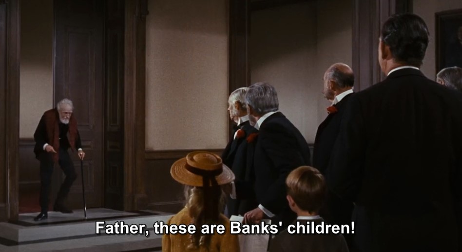 Adegan klimaks di film ini adalah saat Mr Banks "memaksa" Michael untuk menyerahkan Tuppance (2 koin) yang dia miliki kepada pihak bank agar menjadi pelajaran bagi anak-anak untuk memulai investasi, tapi karena gerak-gerik pihak Bank yang "menakutkan" akhirnya malah membuat Michael ketakutan dan akhirnya malah membuat semua nasabah di bank tersebut merasa jika uang mereka tidak akan pernah kembali, hal ini membuat keributan yang berakibat dipecatnya ayah Michael.